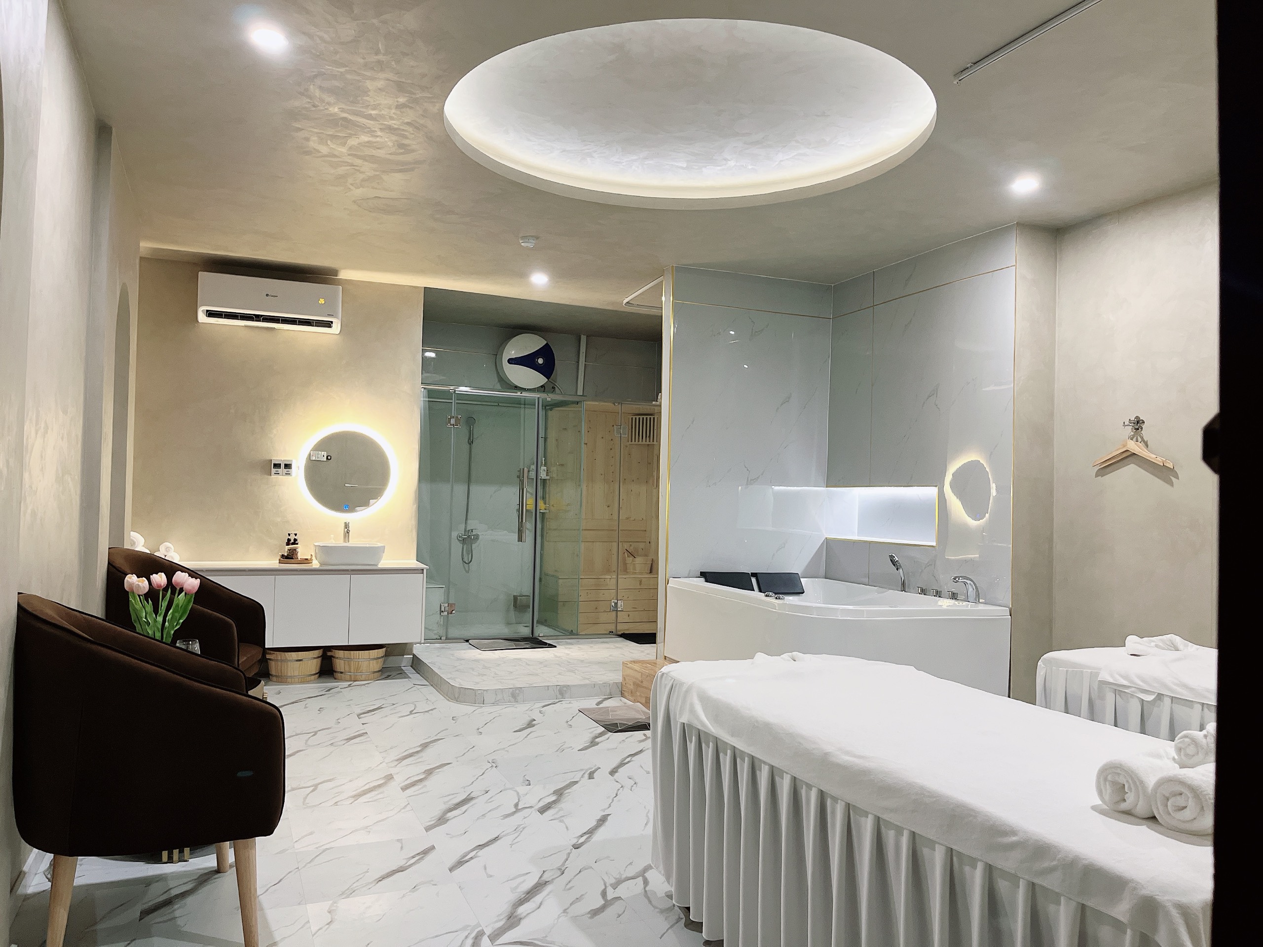 -Xông khô or ướt tại phòng riêng ( có thể cả 2 )